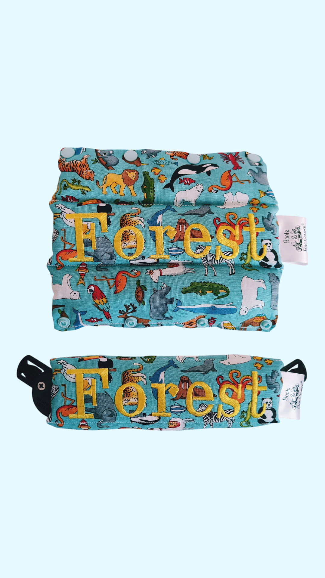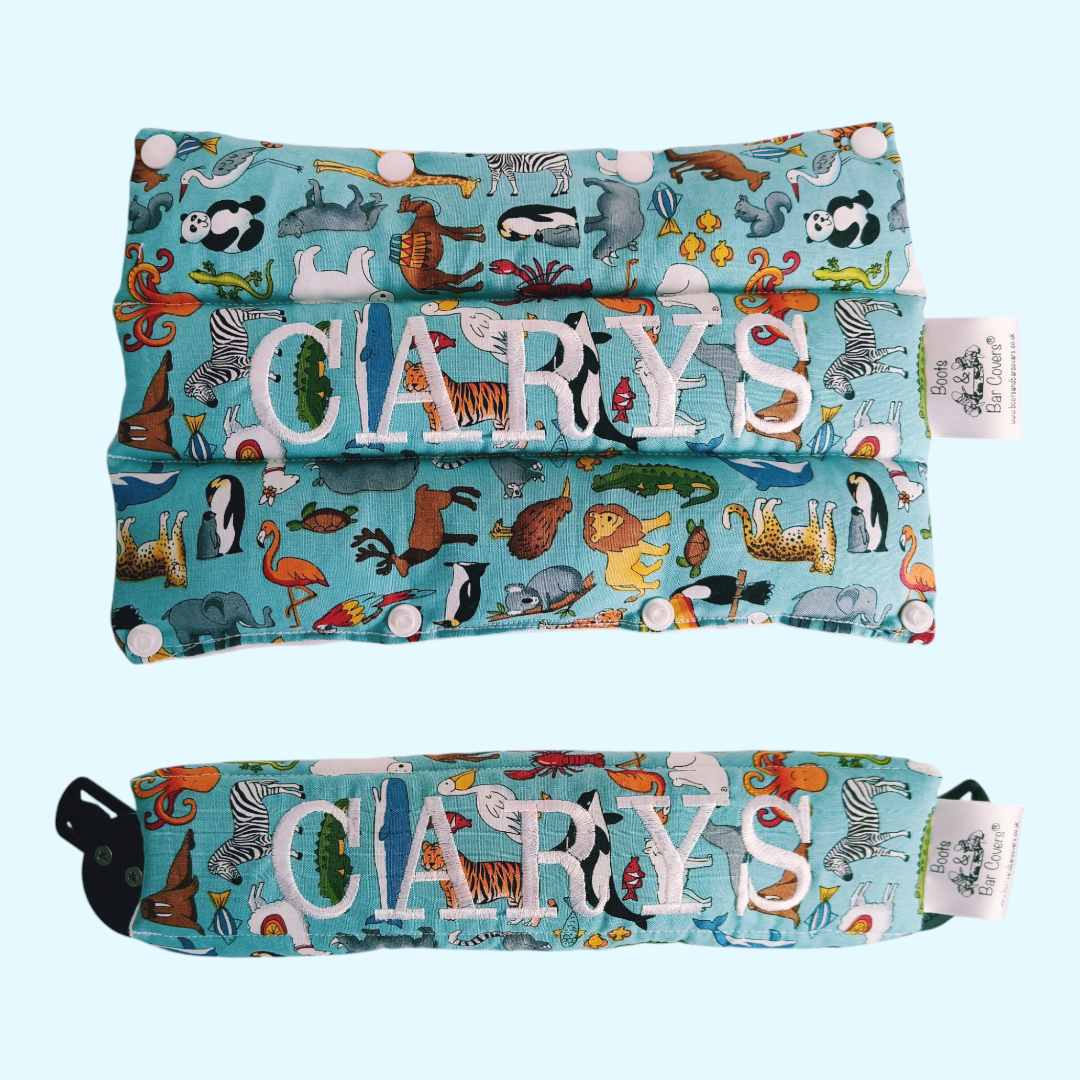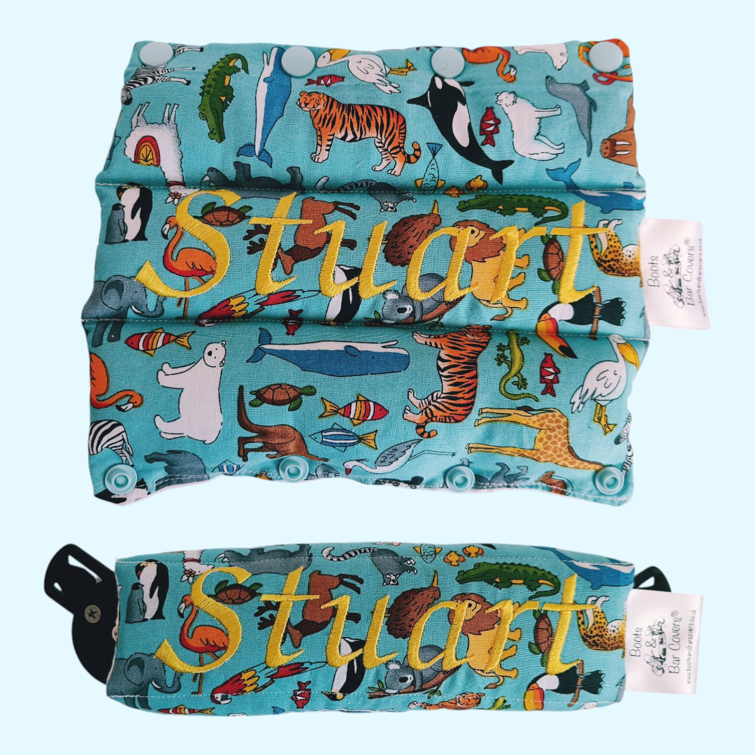 Beautiful topsy turvy fabric featuring animals from all over the world of blue background.