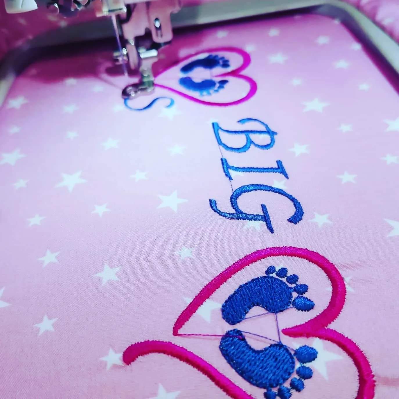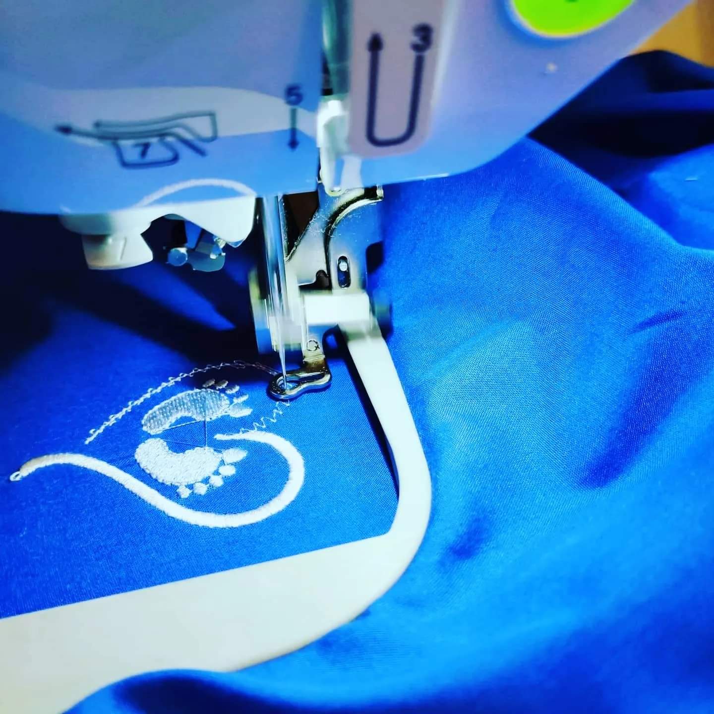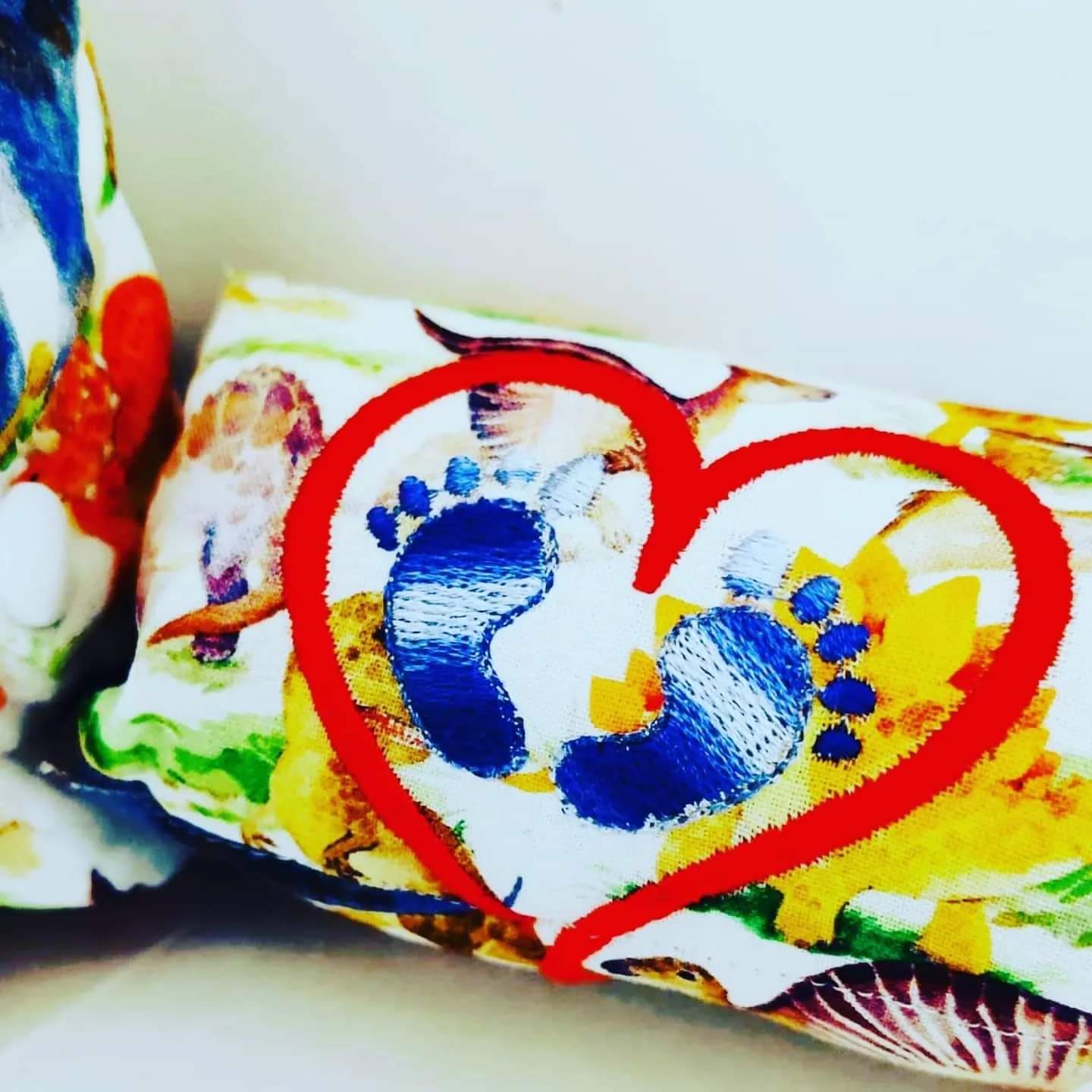 Beautiful embroidered feet in heart. Available on any available fabric, with or without name in any embroidery colours.
