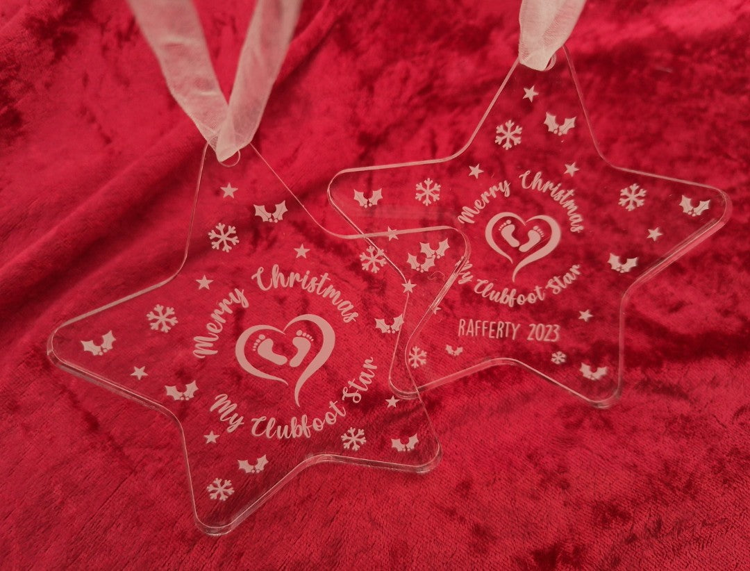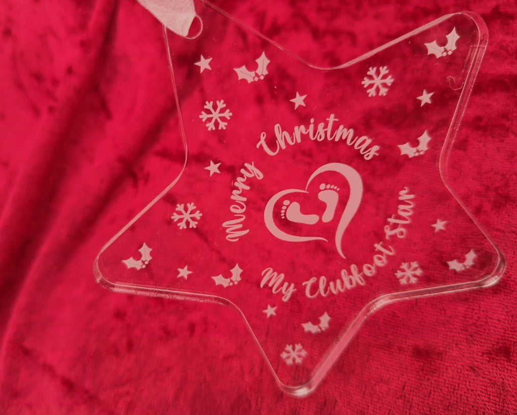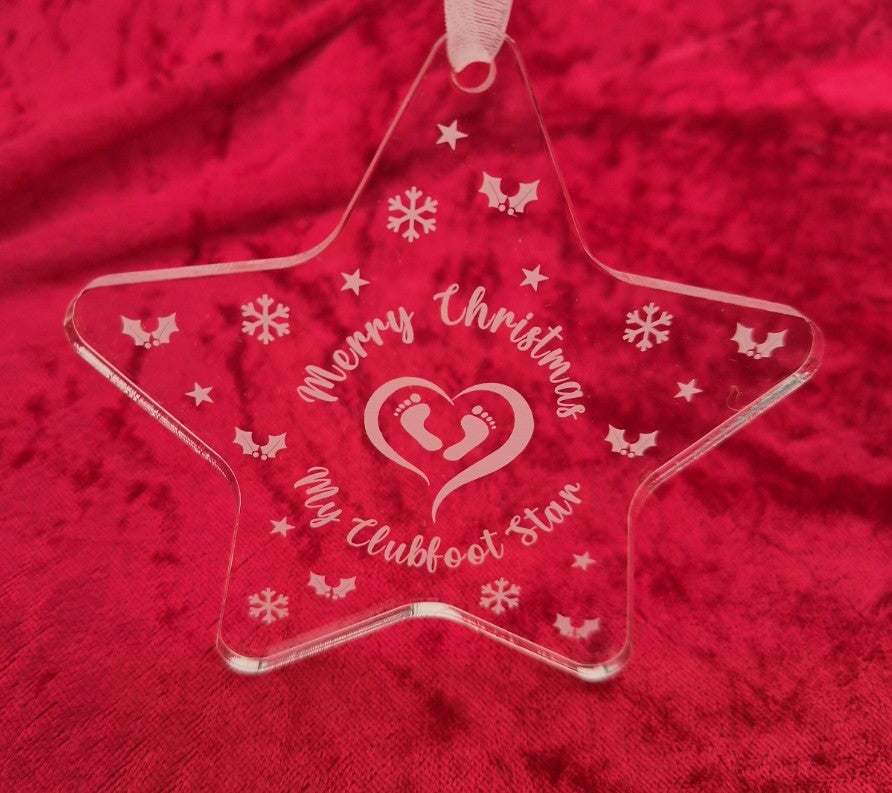 Beautiful etched acrylic star, perfect for your Clubfoot Star this Christmas.
