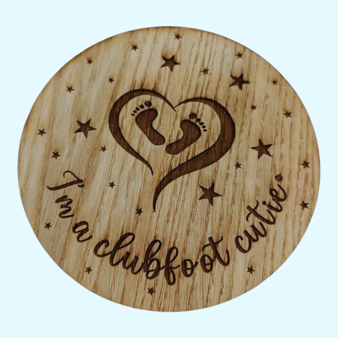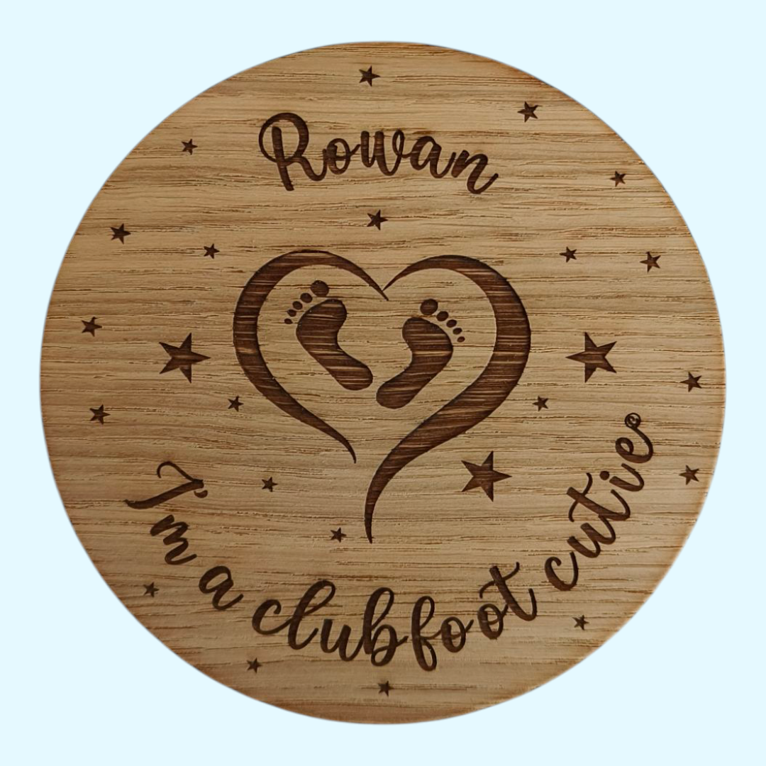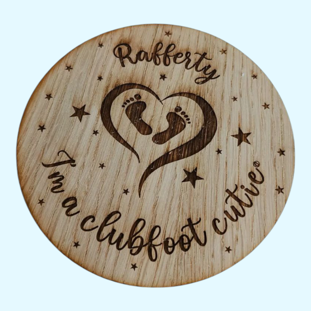 Beautiful Clubfoot milestone discs in wood and acrylic. Personalised version available. 5" discs