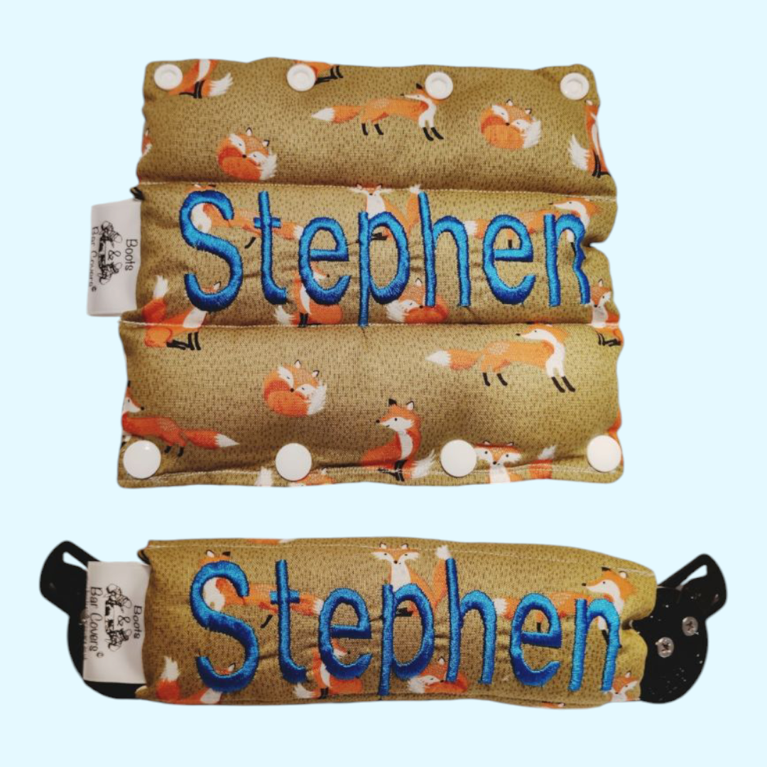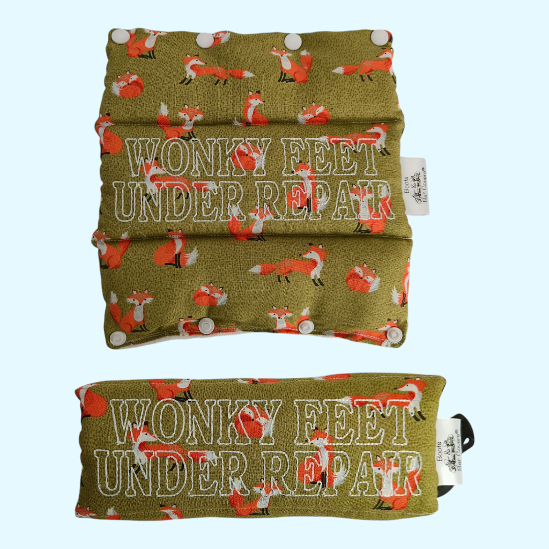 Clubfoot boots & bar cover Foxes on Mustard green