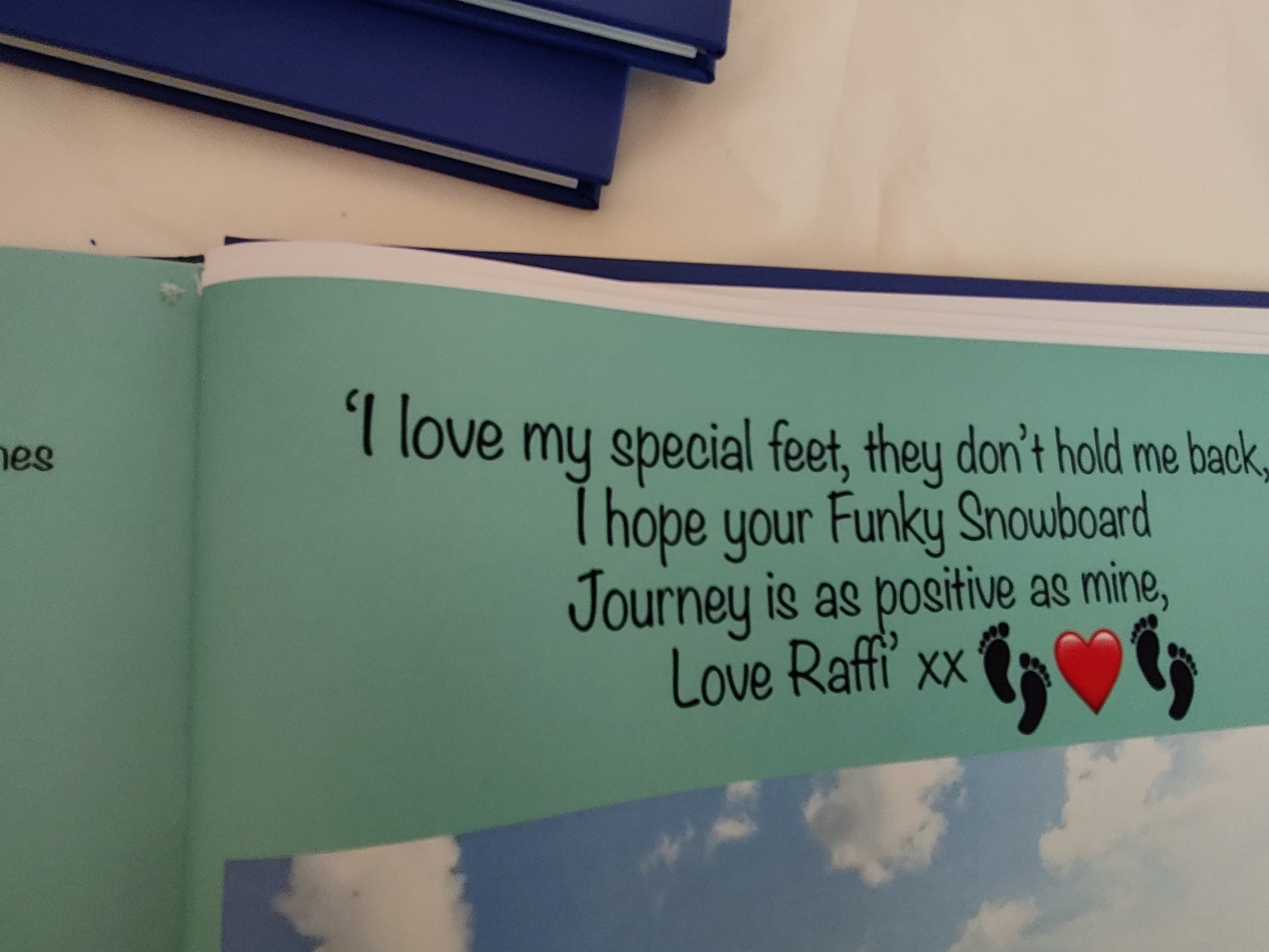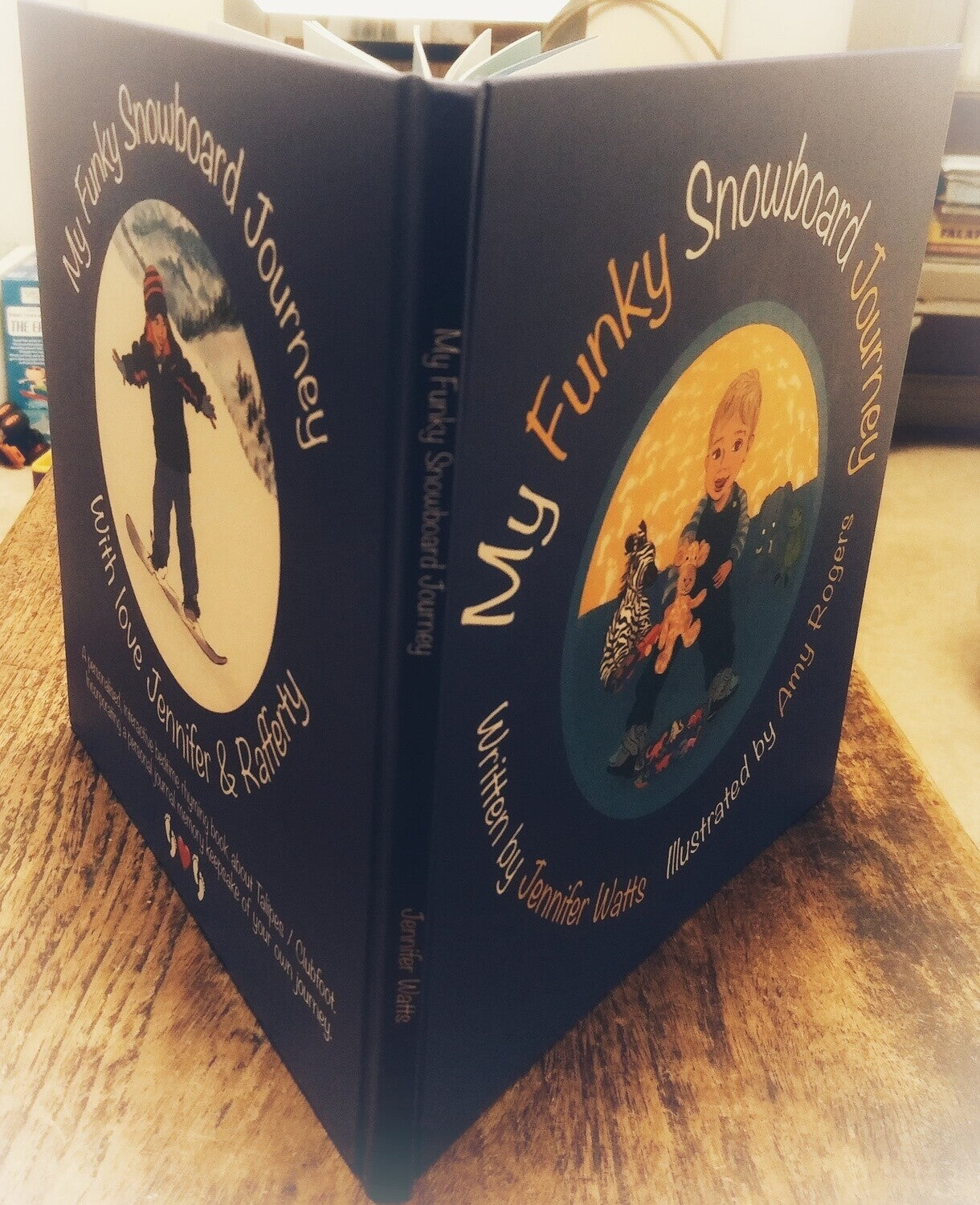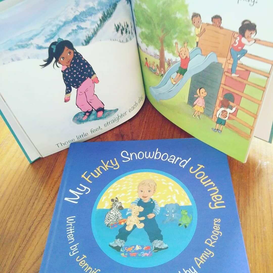 My Funky Snowboard Journey is an interactive, personalised, bedtime rhyming story and memory journal for little ones with Talipes.