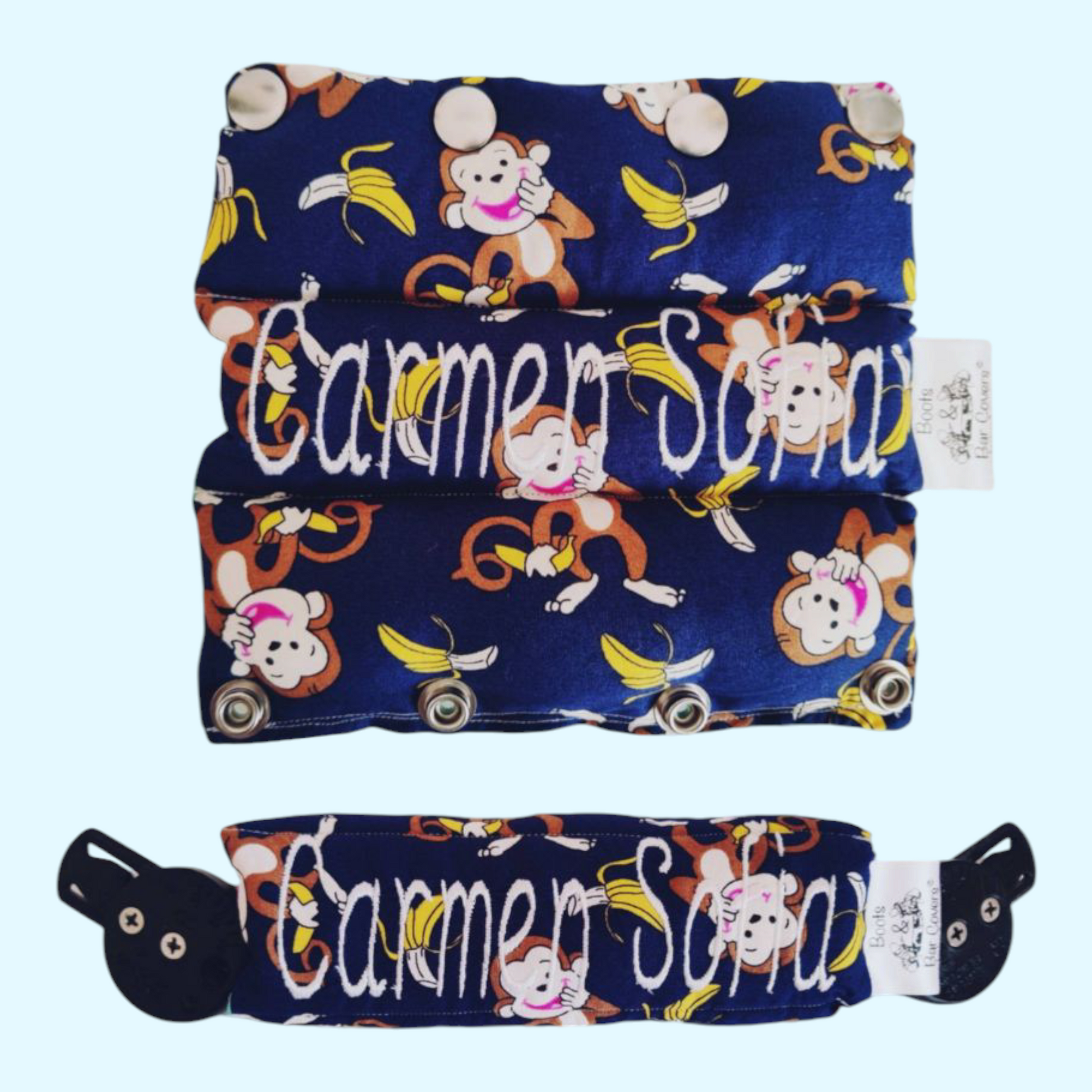 cheeky monkeys with bananas on navy