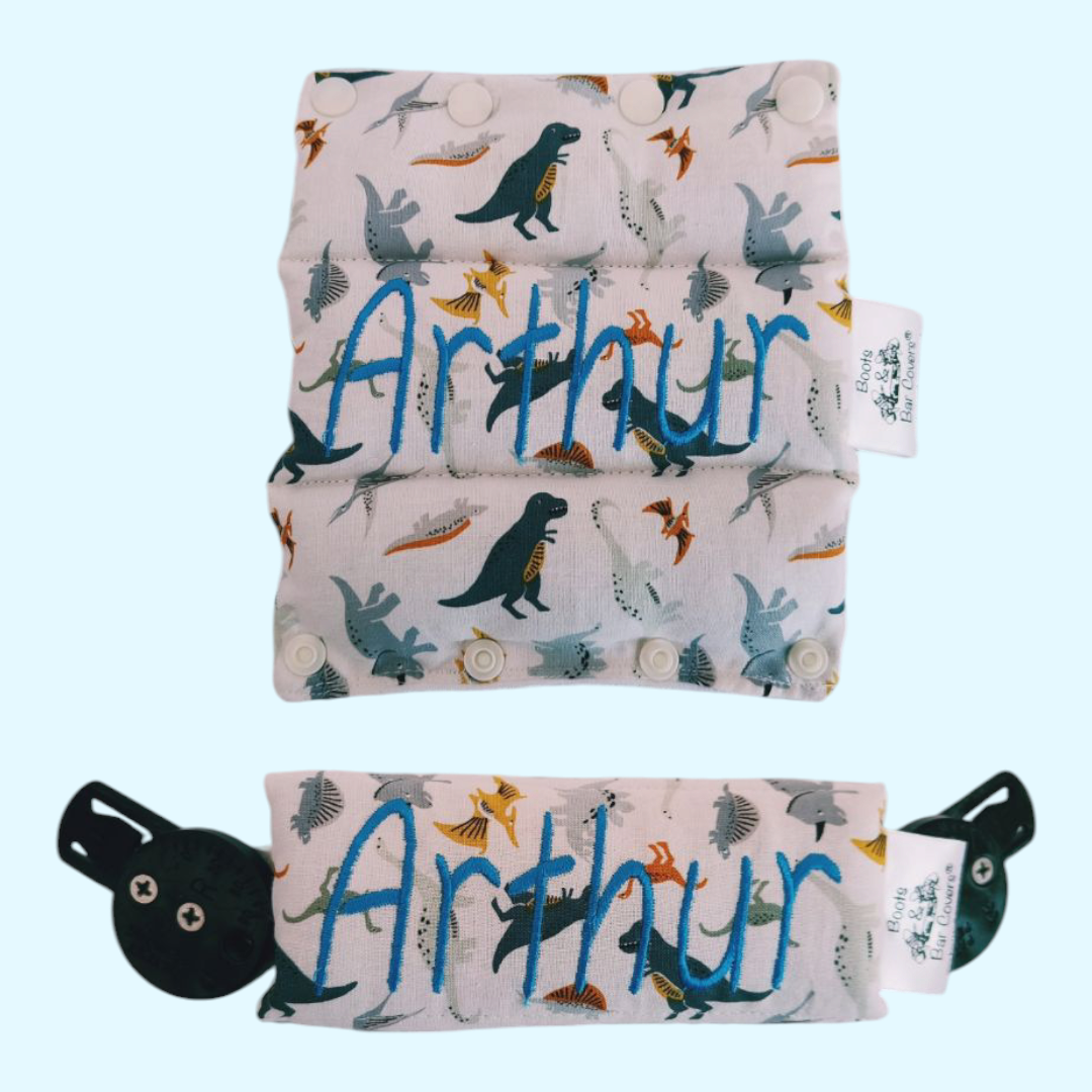 Clubfoot boots & bar cover Dinosaurs - Neutral & dinky